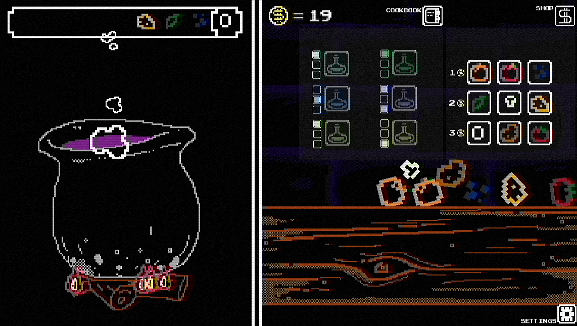 Next open up the shop. It's the button to the right of the cookbook. It's where you'll purchase all of the ingredients to brew your potions.